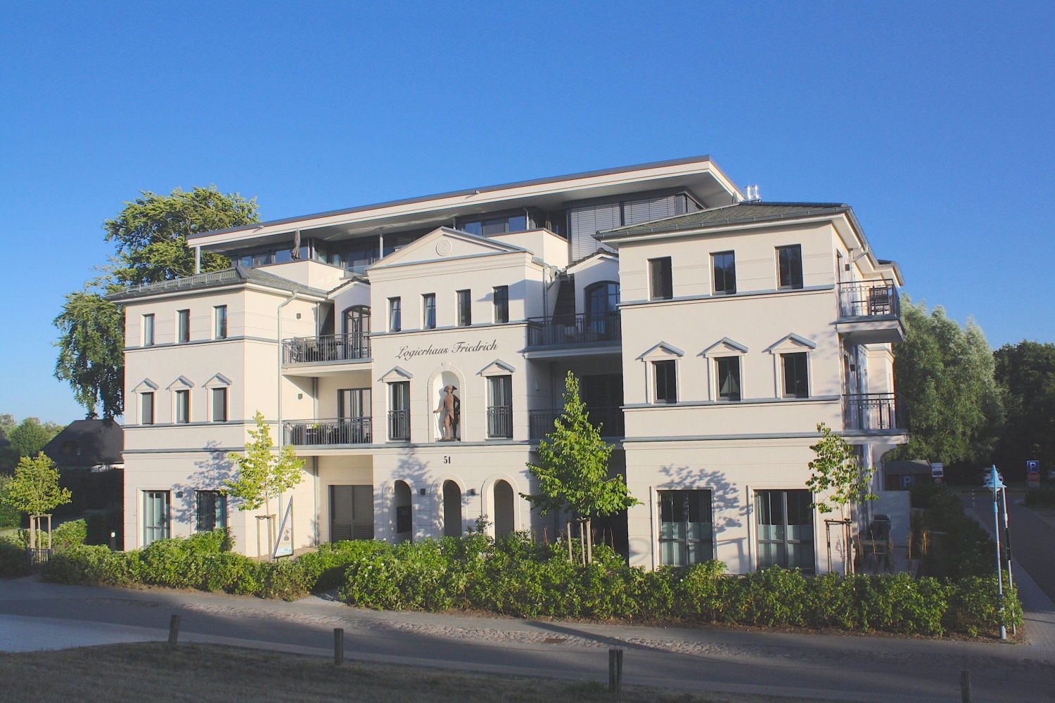 Das im Ostsee-Bäderstil erbaute „Logierhaus Friedrich“ in Zingst befindet sich in erster Reihe vom feinsandigen Ostseestrand und ist nur wenige Schritte vom Kurhaus an der Seebrücke mit Tauchgondel und der Flaniermeile entfernt – zahlreiche Cafés und Boutiquen laden zum Verweilen und Bummeln ein.